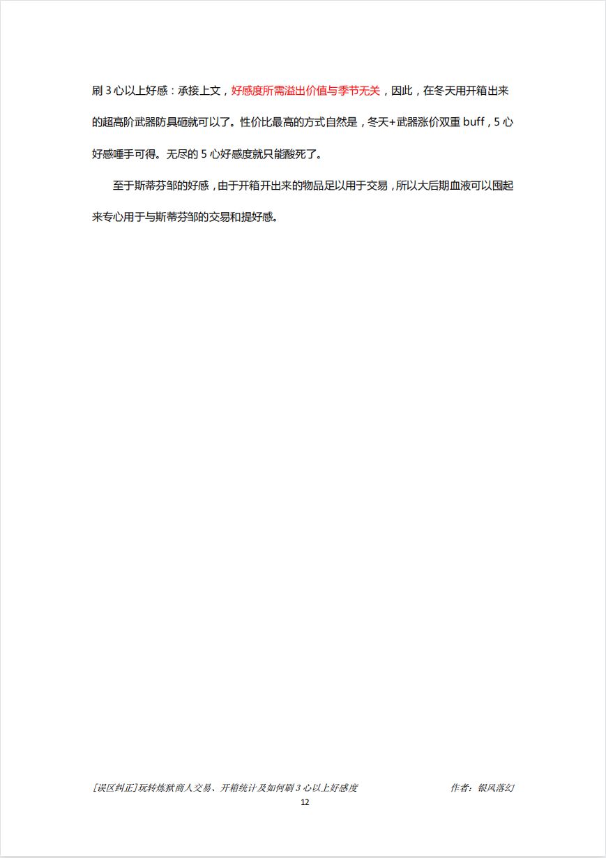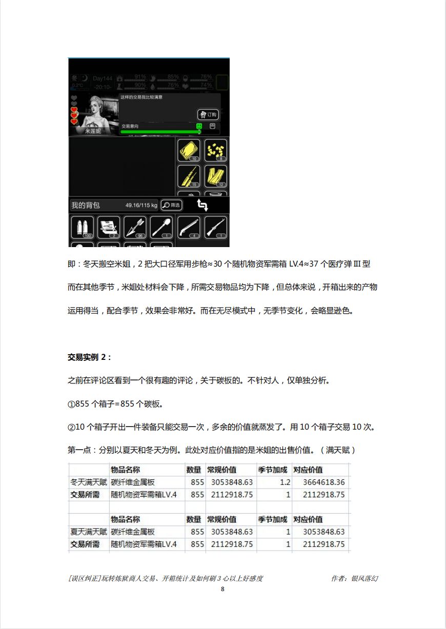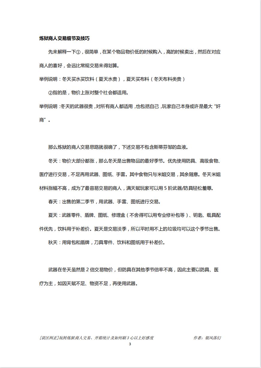 待修正内容:天赋对箱子交易有极高的加成,因此满交易天赋的玩家完全可以用箱子交易取代开箱,这两者性价比相差不大,除非你是真的仓鼠党喜欢囤物资,否则满天赋直接拿箱子交易即可。