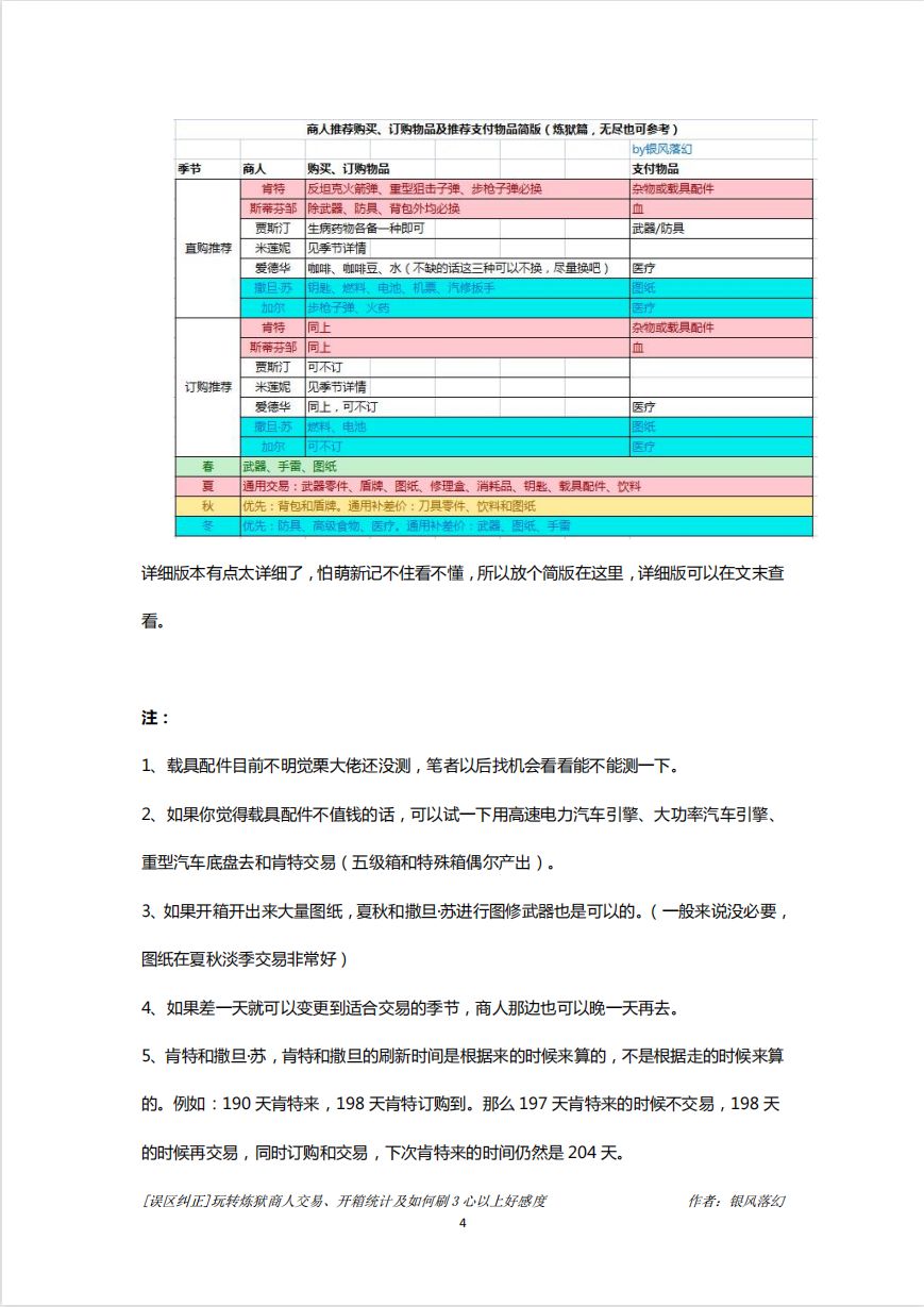 3、米姐在夏天如果觉得实在没有合适交易的物品,可以用斯蒂芬绉的装备。(有车的话也可以用载具配件)