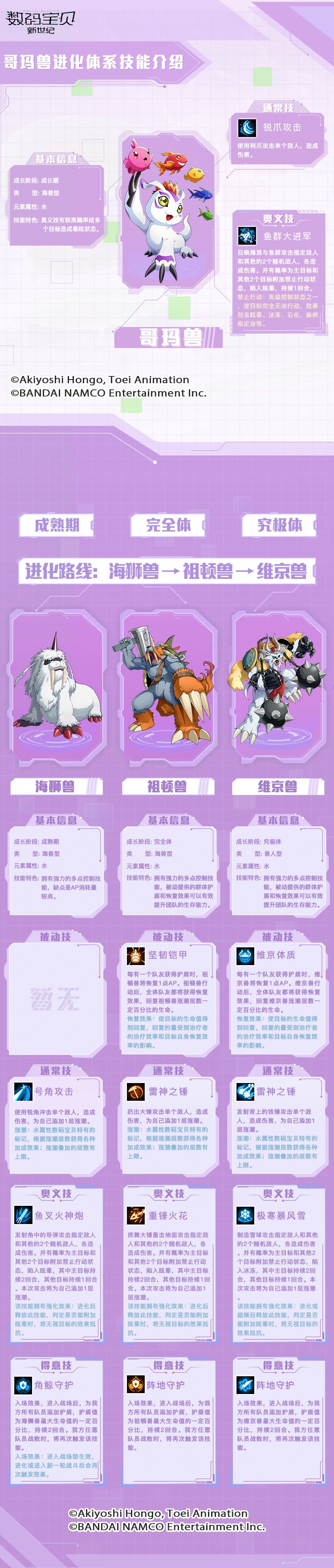 数码宝贝情报丨鱼群大进军攻击!游戏内哥玛兽进化体系技能介绍