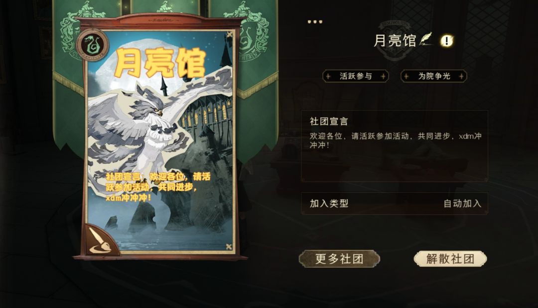月亮馆社团招人,是蛇院,官服骑士巴士区,要活跃的小可爱,刚刚成立不久,目前就我一个人
