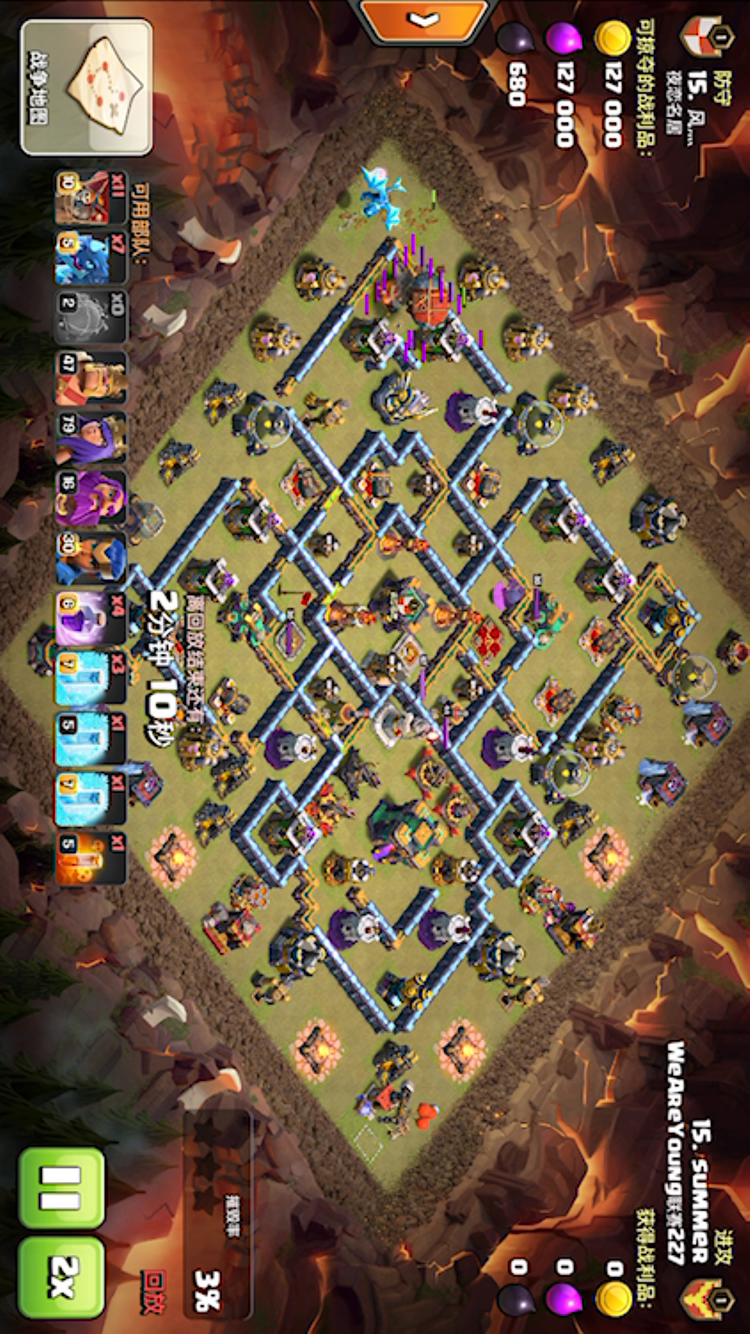 那么这里肯定有小伙伴会问为什么不在前面的本数稳一稳再速而是直接速到14呢?既然已经是速本了,那肯定是要把速本的优势发挥到最大,部落冲突如今已经发展到14本了,大家对速本的刻板印象不能再停留在即没战斗力又白给的时代了,本数的优势可以使速本形成质变,速14可以解锁5级雷龙,而5级的雷龙一字划有多强,经过联赛及部落战的长期检验,5级雷龙一字划打14以下的本数可以做到轻松三星,手残党的话两星不是问题,再差点打12及以下三星肯定不成问题,而反之一个核心升得很高甚至是升满的速14你让稳13及以下的玩家们来打基本是平不了的(大神除外)。