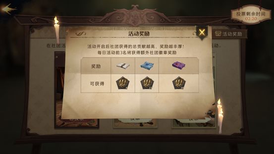1. 每天参与社团活动可以获得社团徽章,随着社团获得的总贡献度提高,奖励也会更加丰厚。每天活动前3名都将获得额外的徽章奖励,而小巫师们获得的徽章也可以在社团商店中兑换史诗级,传说级卡牌以及珍贵的魔药配方,表情动作等。