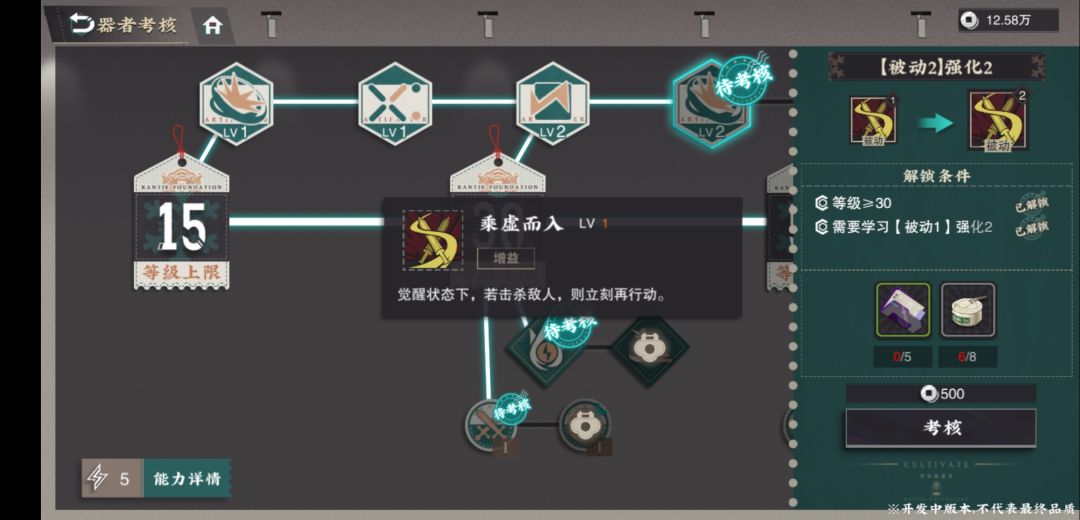 考核中,“乘虚而入”升级不能带来任何提升,不但消耗材料还会限制后续考核