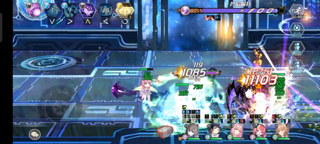 104的反伤,因为喵特有被动反伤桃红容易暴毙(如果打的时候桃红能顶住就随意),所以这层如果有五星桃红拿完了天赋可以直接用主角带桃红天赋过,如果没有五星桃红可以像我这样,设置里把奶妈的跟随关掉,开局拉到右边打,全程使用跟随让桃红不打喵特防暴毙,等到出盾的时候让桃红挂禁疗(桃红的必杀不能挂禁疗可以用跟随打断)。