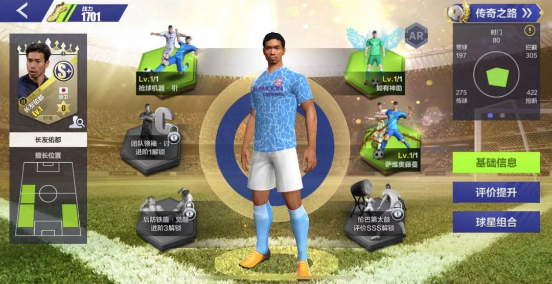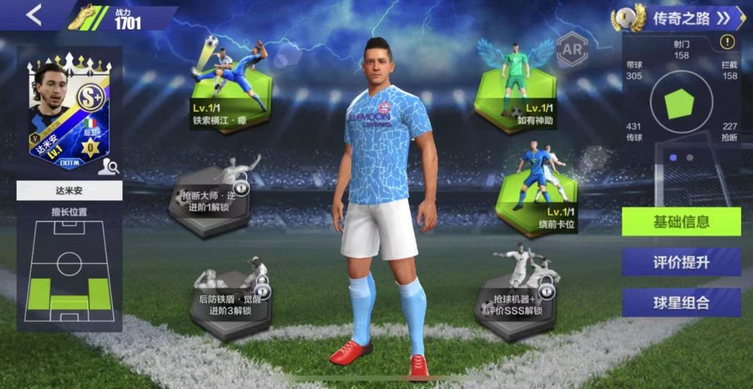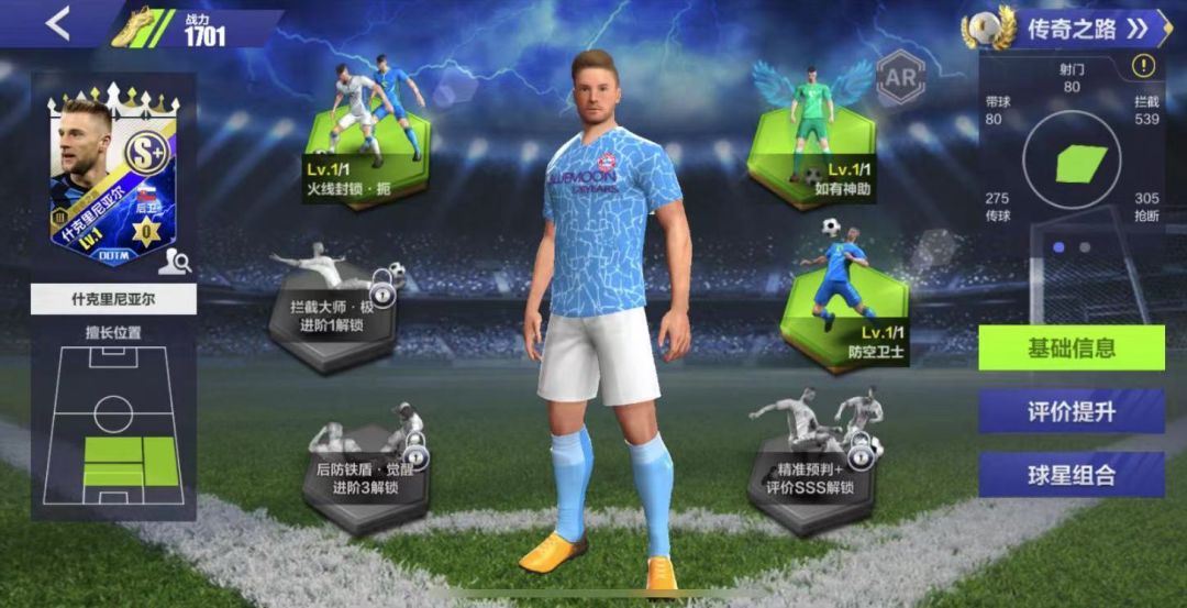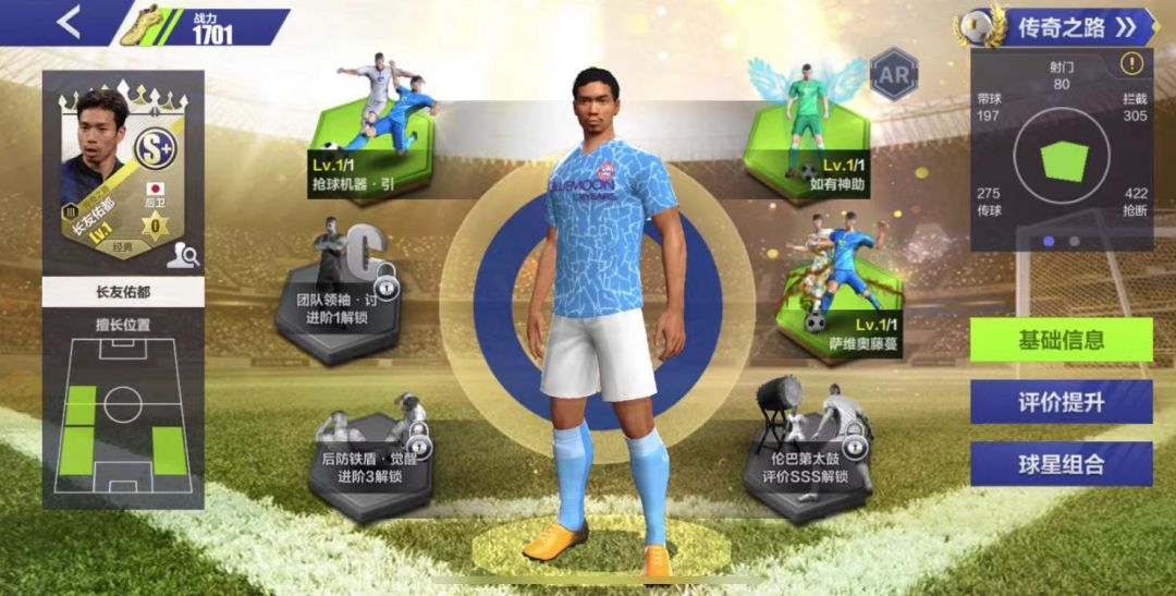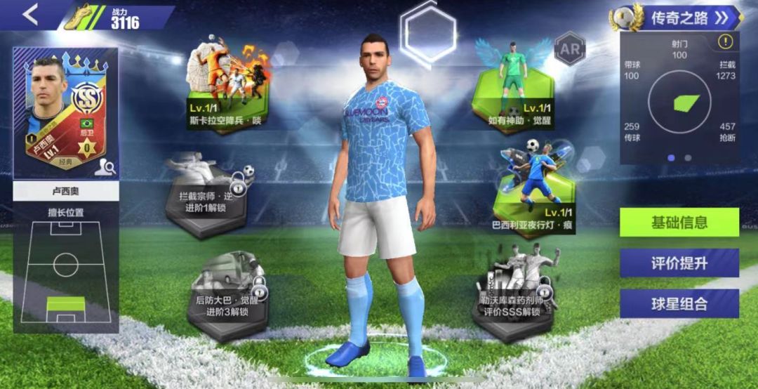 中后卫有唯一探索卢西奥,防空能力优秀,作为队套必练,其他三个王者级别的中后卫中101戈丁有封堵,防空和预判,技能比较好,另外两位可以在探索卢西奥没有的情况下暂代中后卫的位置,总体来说国米的后卫线是偏弱的。
