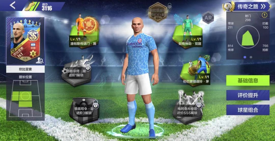 中前卫上面两大巨星坐镇,维埃拉负责防守,马特乌斯攻守兼备,坎比亚索坐镇后腰辅助进攻。碰到任何中路进攻的套路都不虚。如果前期凑不齐中路这三个顶级配置的球员,可以先用王者代替其中之一,防守强度并不会明显下滑。