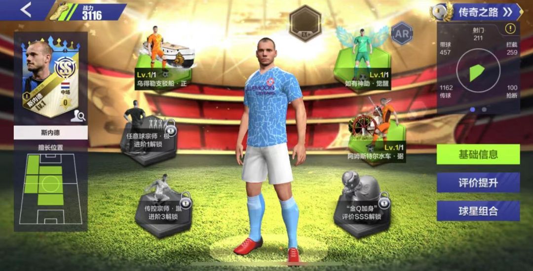 国米拥有1个超级巨星,1个周年限定巨星,3个普通巨星,5个探索,这就占据了10个位置,超豪华的阵容配置。