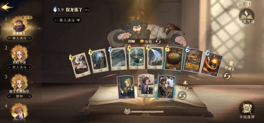 总的打法随笔:这个卡组主要靠运营龙蛋为主,回响的海格是必带的,龙蛋有了海格大叔后还是挺肉的,看卡牌封面也知道带大叔吧嘿嘿,可以适当卖蛋骗费,骗费在这个卡组很重要,我们的血是假的,只要保证龙蛋不死就行,对面如果丢够很多费,让我们运营出嗅嗅那么蛋死也无所谓。肉身经常要抗技能,不要怕挨打,挨打对玩龙蛋的算什么,我经常伤害比别人低好几千打赢对手,奶量都是5000这样的。当用清水消耗掉对面卡珊德拉还有哈利波特这类天克龙蛋的,再孵化出一只龙,将会是敌方噩梦。看情况要冲到最前方用愈合如初奶龙,不要出龙后就不管了,比如面对有清泉的对手,放了愈合如初的龙会非常硬,即使敌方一个清泉满打都能不死还能回上大半,直接卖就会死,所以请务必奶它,能促发两个以上的海格回响,对方是不好解的,当他疲于奔命的丢技能基本就赢了。火和清泉是可以用来辅助进攻的,一个是aoe一个主要打单体,比如对面疲于奔波出白龙或者厉火,就可以跟清泉了,出蜘蛛之类的就可以加火。对面历火接蜘蛛进攻之类的也不要怕,这种时候你至少也得马上孵化出龙蛋了,先等它出来了,然后清泉跟上就能打了,后续立马补一个愈合如初,会很无敌,刚出生的小龙就能比划过大火龙了喔。(后续有改进打法了,打厉火完全不会输,下面有视频和相应楼层解析)前期防守与消耗敌方伙伴是关键,盾和卡珊德拉和烟花盒子合理搭配可以打出很好的防守,卡姐在场,不是三头厉火就是白送,还有两个技能解场,足够应对绝大部分情况了。残余的烟花盾是可以接龙蛋的,对面丢技能,你至少可以保住龙蛋不被秒能促发海格。克制的卡牌主要是飞沙走石之类的能弹开你的蛋,让盾和治疗都给偏,但一般这个卡组面对其他卡组都能碰一碰 。还有蛮多心得,比如在盾抗雷电的时候快点奶出龙蛋之类的,我一时想不周全,有感兴趣的小伙伴在评论快乐聊天,一起讨论讨论~