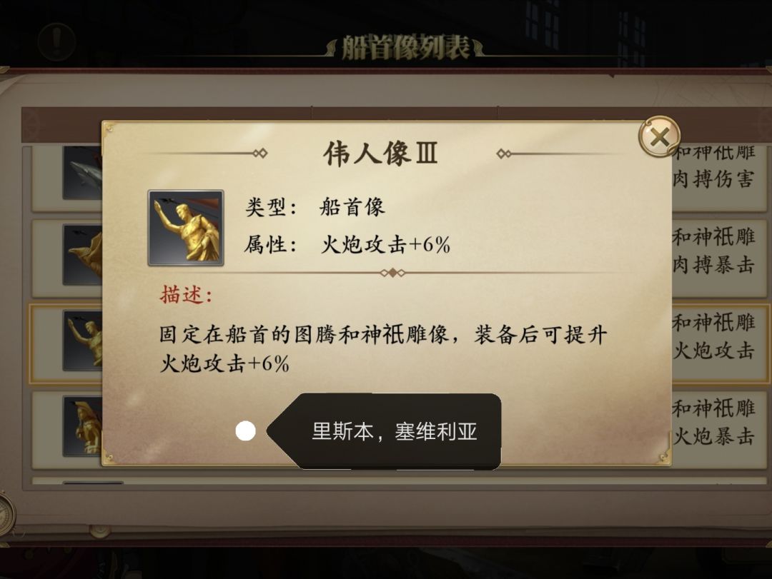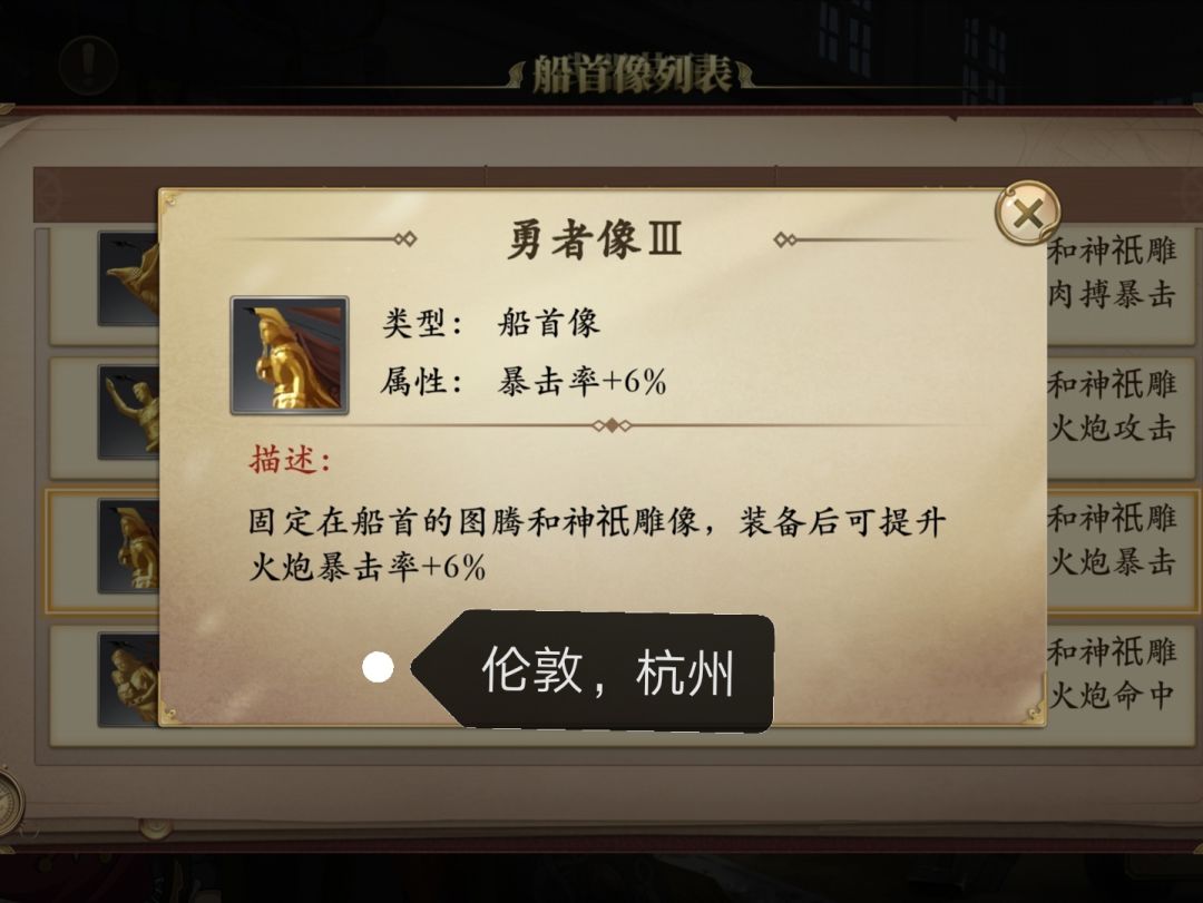爵位潜力=相关贸易中享受折扣提高利润。顶级统帅宝物先贤之誓,50级伯爵船死神加莱桨船。