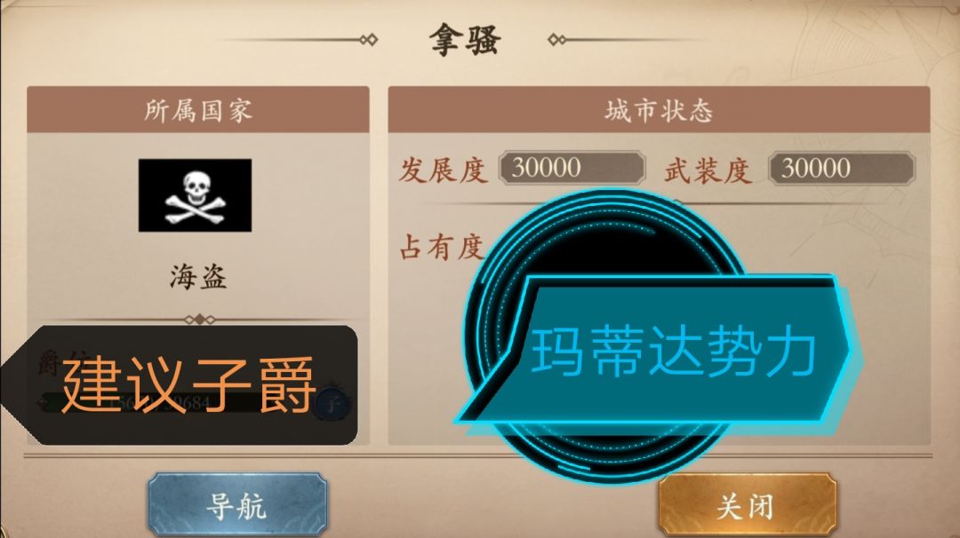 海盗势力没有武装潜力,开通巴拿马运河后才有部分商业能力,爵位价值完全体现在黑珍珠号,班杰明和两件宝物上!爵位价值中上。