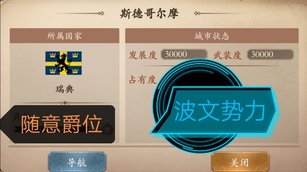 主城北欧斯德哥尔摩和圣彼得堡。势力范围为北欧2主城和附近6个港口。