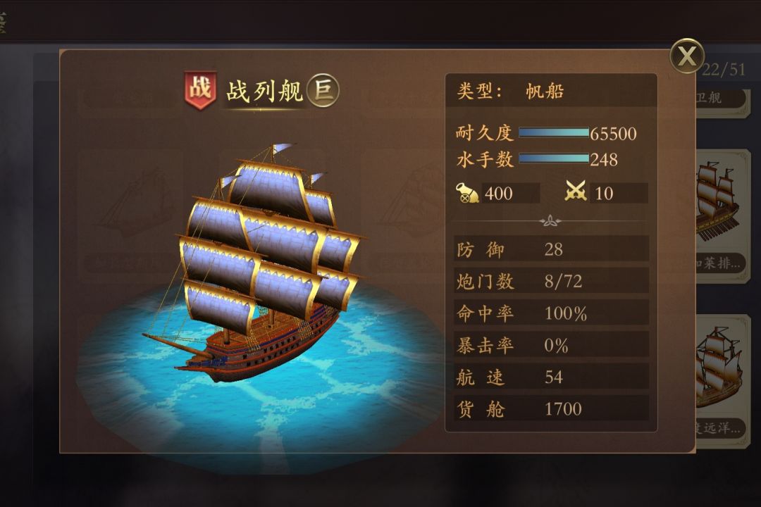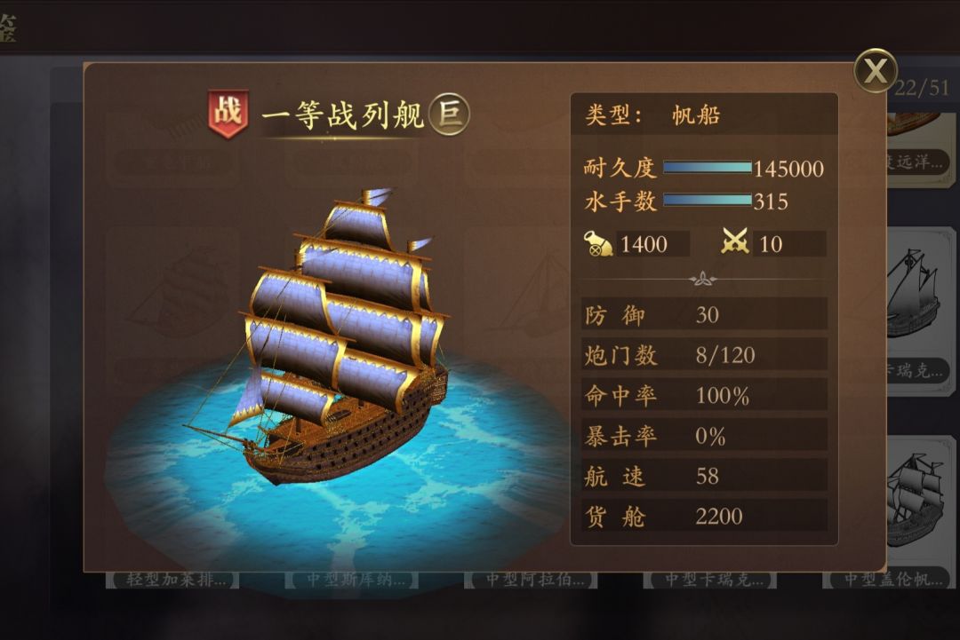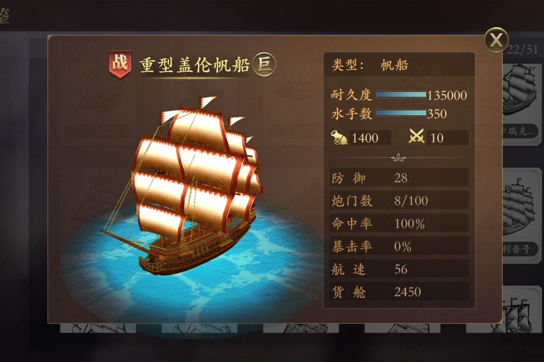 武装潜力=速射炮(独有),巨盖伦炮船,伟人像,重盖伦炮船(需要图纸)。