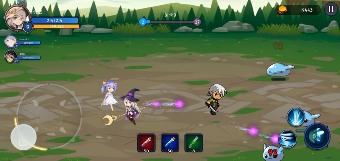 东部森林7(小恶魔有两个形态,一个是收到伤害会变大,大到极限会开始召唤史莱姆顺便减小体型;第二形态受到伤害反伤,这个时候最好是不要a它,让小弟a就可以了,反正都可以一遍过)
