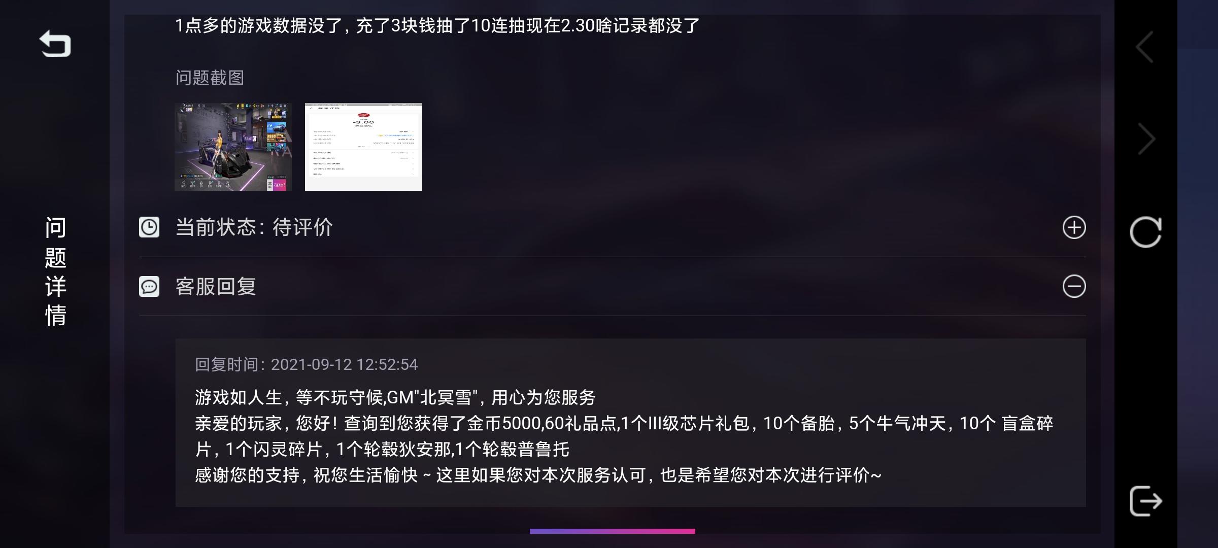 游戏数据被重置?今天凌晨1点左右完的还充了3块钱秒杀闪灵的卷抽了十连盲盒后面等到2点多再登游戏发现都被重置了支付记录还在呢,向游戏里官方客服反馈是给我查询到了就没了也没说怎么解决??什么奇葩。而且这个问题一直存在每次登游戏都是全新的一天?网易你什么意思?叫我怎么玩。钱也不敢充一充再登没了你说好不好玩?