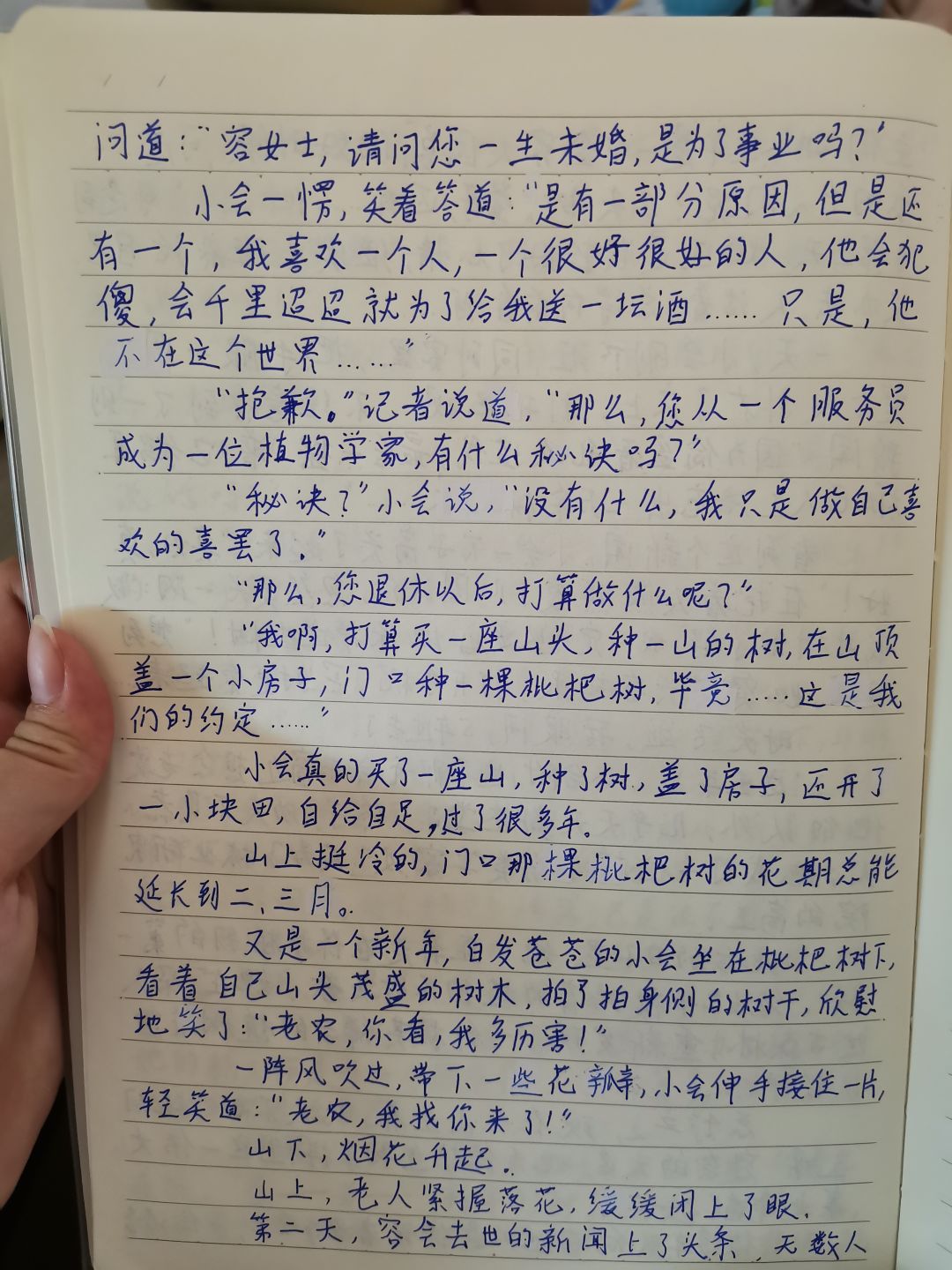 第二天,容会去世的新闻上了头条,无数人为她默哀,一些年轻的人还不太明白为什么要这么隆重,直到长辈们告诉他们当年小会的功绩,大家都震憾了……原来,书上说的“保护多种植物,为我国生物学、医学作出巨大贡献”根本不足以概括她辉煌的一生……