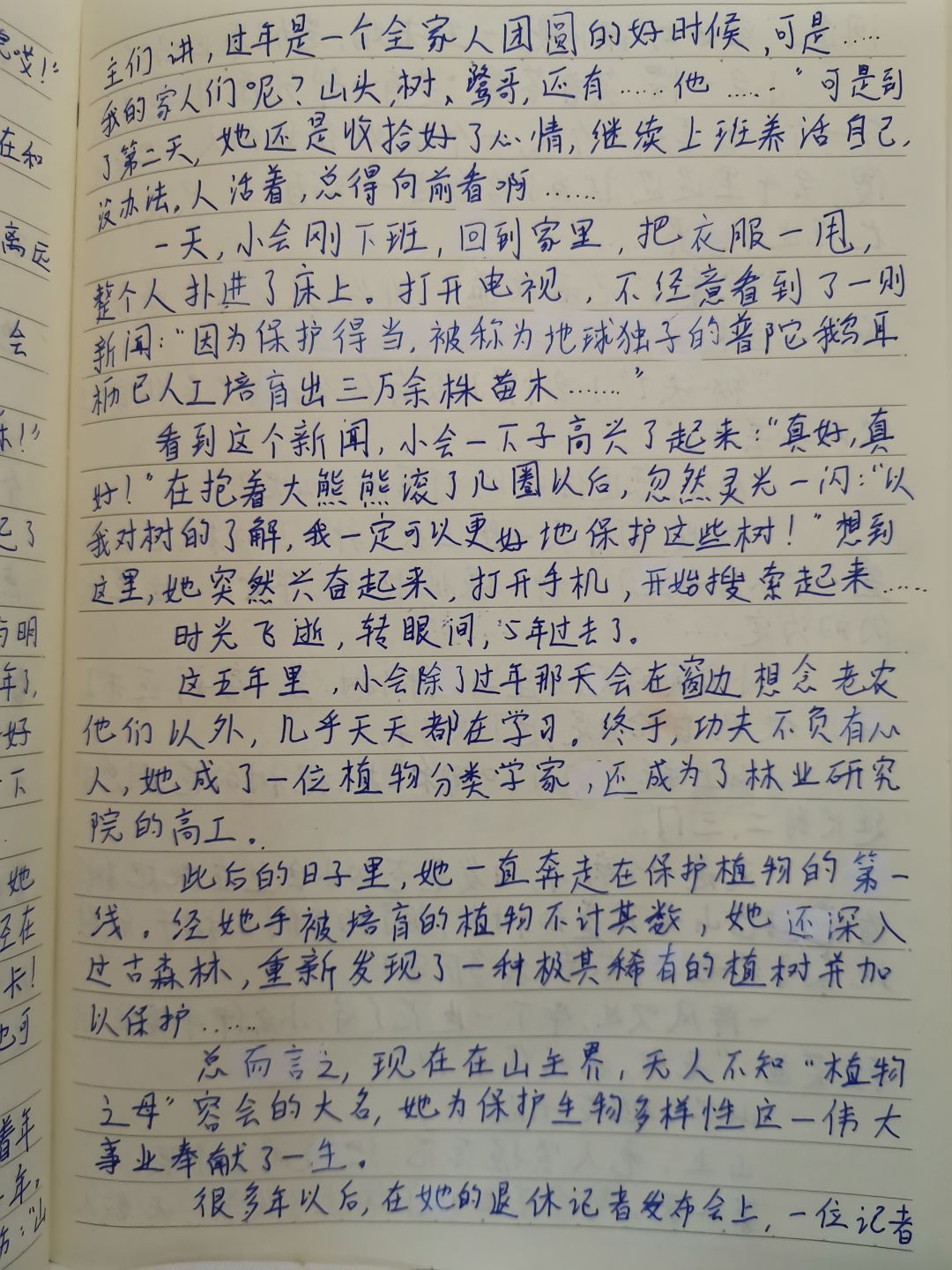 时光飞逝,转眼间,五年过去了。这五年里,小会除了过年那天会在窗边想念老农他们以外,几乎天天都在学习。终于,功夫不负有心人,她成了一位植物分类学家,还成为了林业研究院的高工。