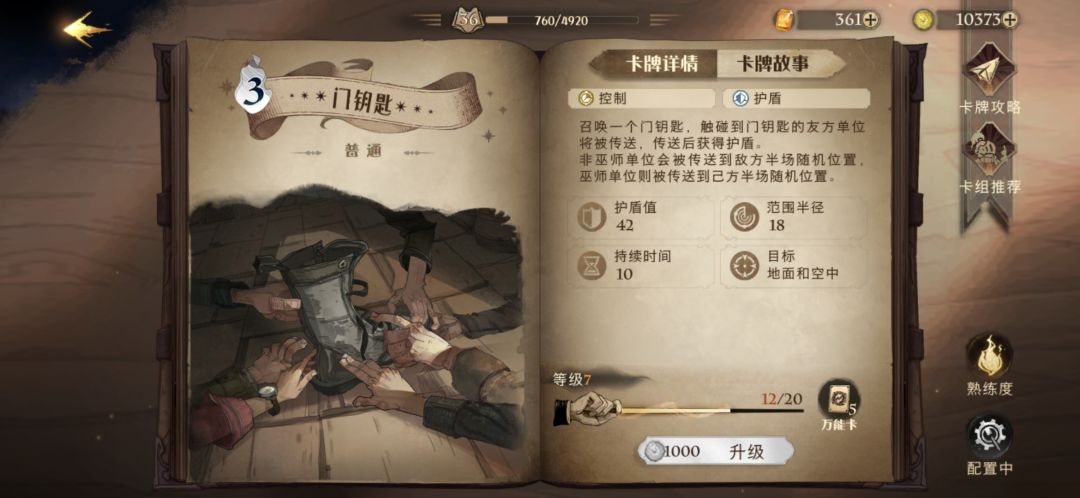 2)应对法术赫敏的关键在于门钥匙,把握门钥匙的释放时机可以躲开大烟花等解场卡牌