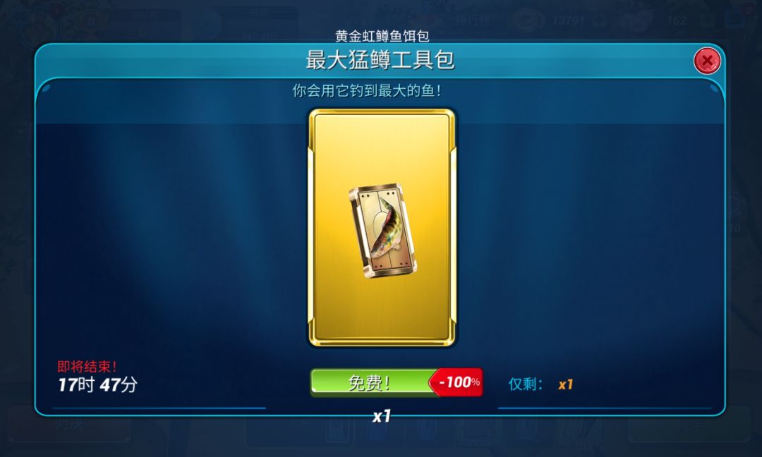这个反正鱼儿不多,但是给我这号上了一级黄金红鳟鱼,也挺稀有的吧。