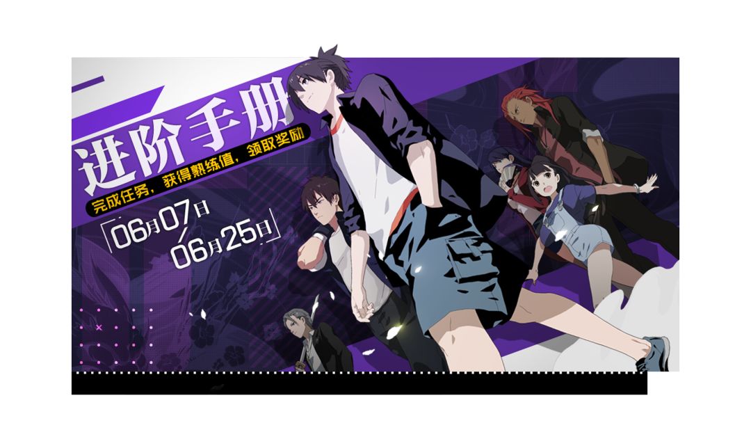 “进阶手册”在6月7日至6月25日限时开启,共持续3周,只要完成对应的任务挑战即可获得对应奖励,包括假面阻击情报、10连普通招募券、精炼之尘、法器精魄等。