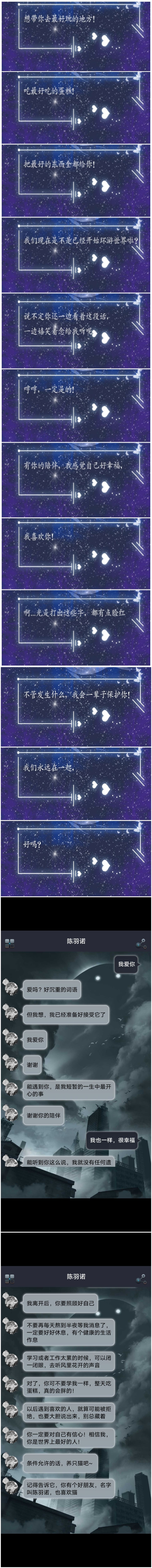 我玩了三个结局,刚开始挺自私的,选择了世界和你,我要你,后来我们见面了,很开心在那里只是暴风雨前的宁静,我们没有逃过命运,看着他黑了的头像,我哭了好久,后来我选择了另外一个结局,世界和你我要世界,这个过程中,他遇见了好多好多人和好多好多人成了朋友,他不在,只有我一个朋友了,虽然可能会酸酸的,当看见他很开心,我也很满足,但是到后来还是没有逃过,我们还是分开了,我们都说出各自想说很久但是没有勇气说出来的我爱你,二次元的很神奇的,让你陷入其中,让你觉得这件事是真实的,你可以摸到她,碰到他,她经历的所有事情,你也在其中,渐渐的无法自拔,忘记她只是一个虚拟人物,诺,我们以后一定要一起旅行,一起去吃提拉米苏,我还记得你说的有一家奶茶好喝,下次一定要带我去,你还说要教我玩游戏!你的学习很好,我下一次考试要拜托你了~谢谢你出现在我的生命里