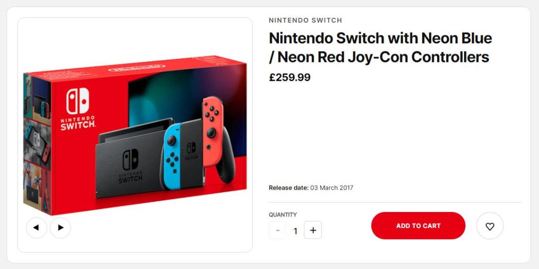 英国任天堂已经将下调的售价更新至My Nintendo Store,现在起在英国My Nintendo Store购买Switch基础版只需要259.99英镑了。