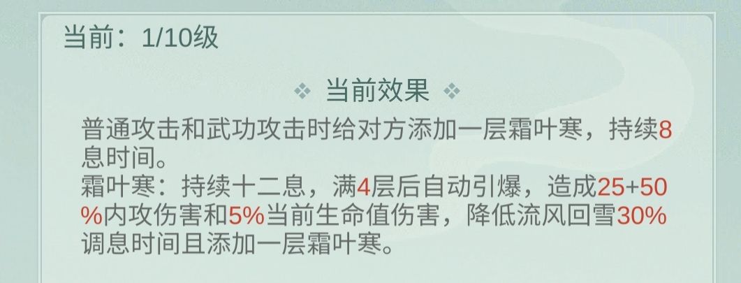 雪娟的疾风骤雨四阶20级,所以疾风骤雨的霜叶寒的伤害很低。但是仍然可以击杀敌人。所以视频里,最值得关注的,是触发了几次霜叶寒。60级一次霜叶寒伤害=同级别一下弱水三千或者一下灼,伤害还是比较可观的。加上触发普攻,伤害就更高了。