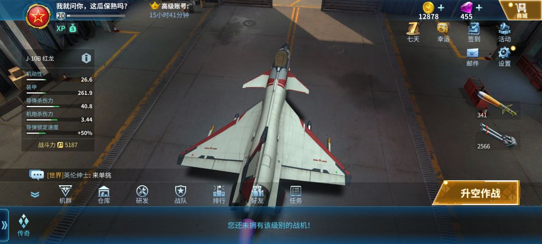 反应一个不知道是bug还是福利的东西。。。我今天打排位,团队模式,本来劣势的,2:4了都。。我的第一架飞机就被轰掉了,结果我的第二架飞机直接上了个不知道是什么的红色双喷飞机(我首冲玩家,就一架J_10B红龙,第二架第三架都是B级机)。。