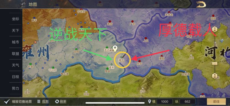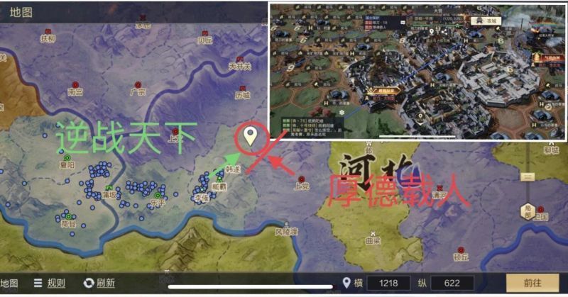 晚上21时,【逆战天下】已推到【厚德载人】成员落地的濮阳与上党隘口处,【厚德载人】开始执行第一轮卡免战战术,把前排的下野沦陷战术,争取开关的时间。