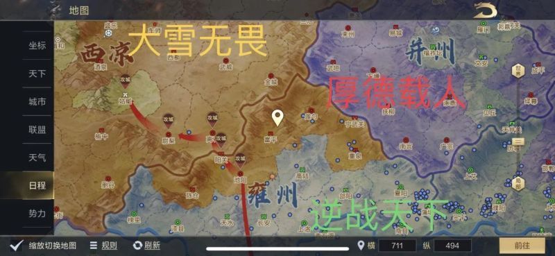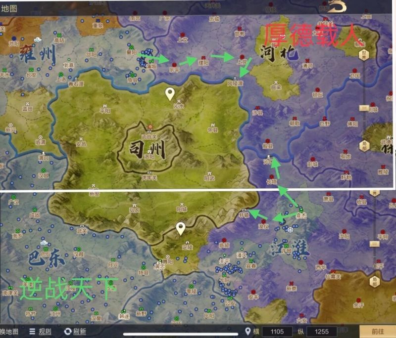 7月30日,【逆战天下】开始制定双线作战计划,一方面从河北地区出发蒲坂进军上党,另一方面从江淮地区出发睢阳进军河北地区,两条线路最终目标司州关卡风陵渡门前。