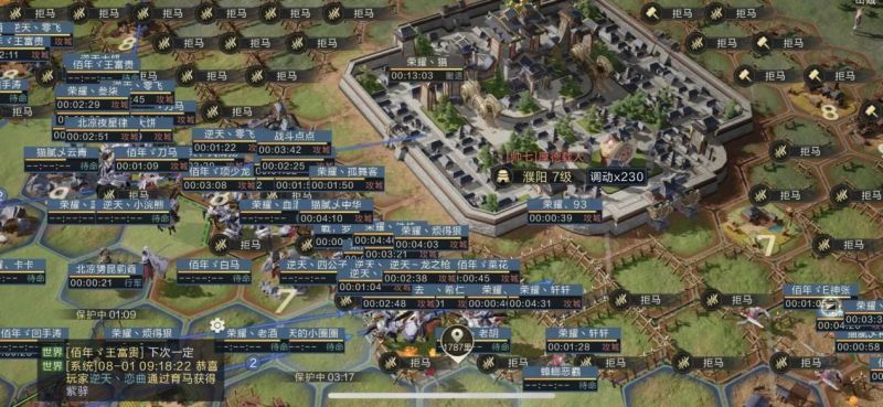 8月4日早上8时,【逆战天下】夺取荆州地区州府楚王坛并成功拿下。晚上20时,【逆战天下】清理完【厚德载人】邺城周边的要塞并重新围起。