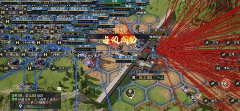 晚上22时,【逆战天下】组织对蒲坂发起进攻,【厚德载人】通过各种调度方式,顽强抵御一波,随后【逆战天下】继续执行关卡周边成员落地,组织第二日的进攻。