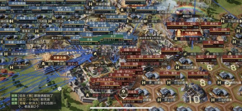 此时【逆战天下】只能孤投一注放到最后一个大营了,双方都卡好时间对大营进行沦陷,最后【逆战天下】得到最后一击,成功打开通道向上党进军的道路。