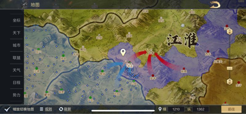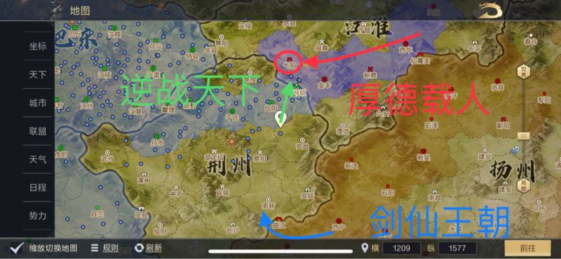 江淮地区战场:【逆战天下】加速拿下荆州与江淮的关卡公安,进军弋阳。【厚德载人】在江淮地区拿下萧县做起机场,接【剑仙王朝】的成员,目标先迅速拿下江淮地区的城池,另一方面在弋阳布置防御战线。