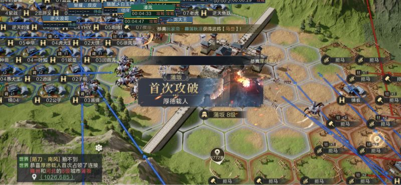 下午14时,【逆战天下】首当其冲点燃蒲坂关卡,毫无战术,一波流突击,双方联盟拆迁高达1300+人,最终【厚德载人】抢的关卡,突击【逆战天下】一波,【逆战天下】奋力阻挡。