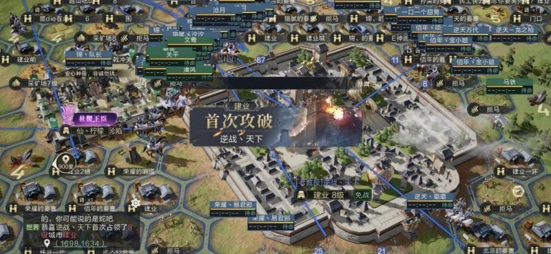 8月26日,【厚德载人】的游侠【屠宰场】也开始布局扬州州府建业,组织成员在建业周边落地围起。【逆战天下】采用三路围攻战术,8月28日晚上22时,【逆战天下】顺利拿下扬州州府建业,实现了一统十三州成就。