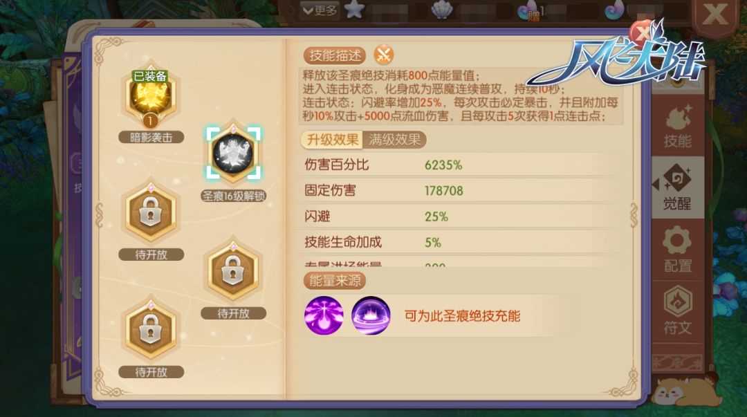 第二圣痕绝技也可以使用圣痕之源进行升级,它的能量则是来自于相对应的圣痕技能。