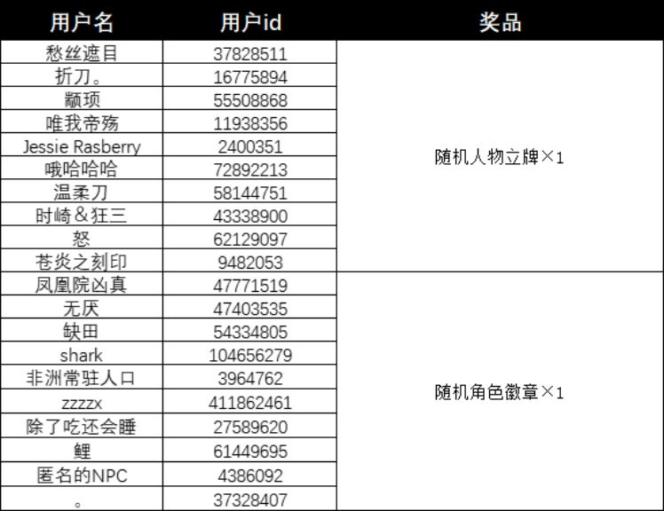 4.我们将从反馈bug的局长中随机抽取10名送出随机角色立牌×1,从提出建议的局长中随机抽取10名送出随机角色徽章×1