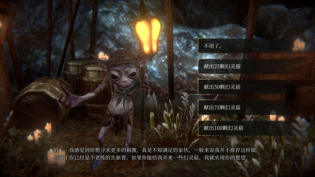 给予幻灵菇之后黑雾内怪物强度上升(明显),幻灵菇掉落率上升(不明显)。给得越多提升越大。