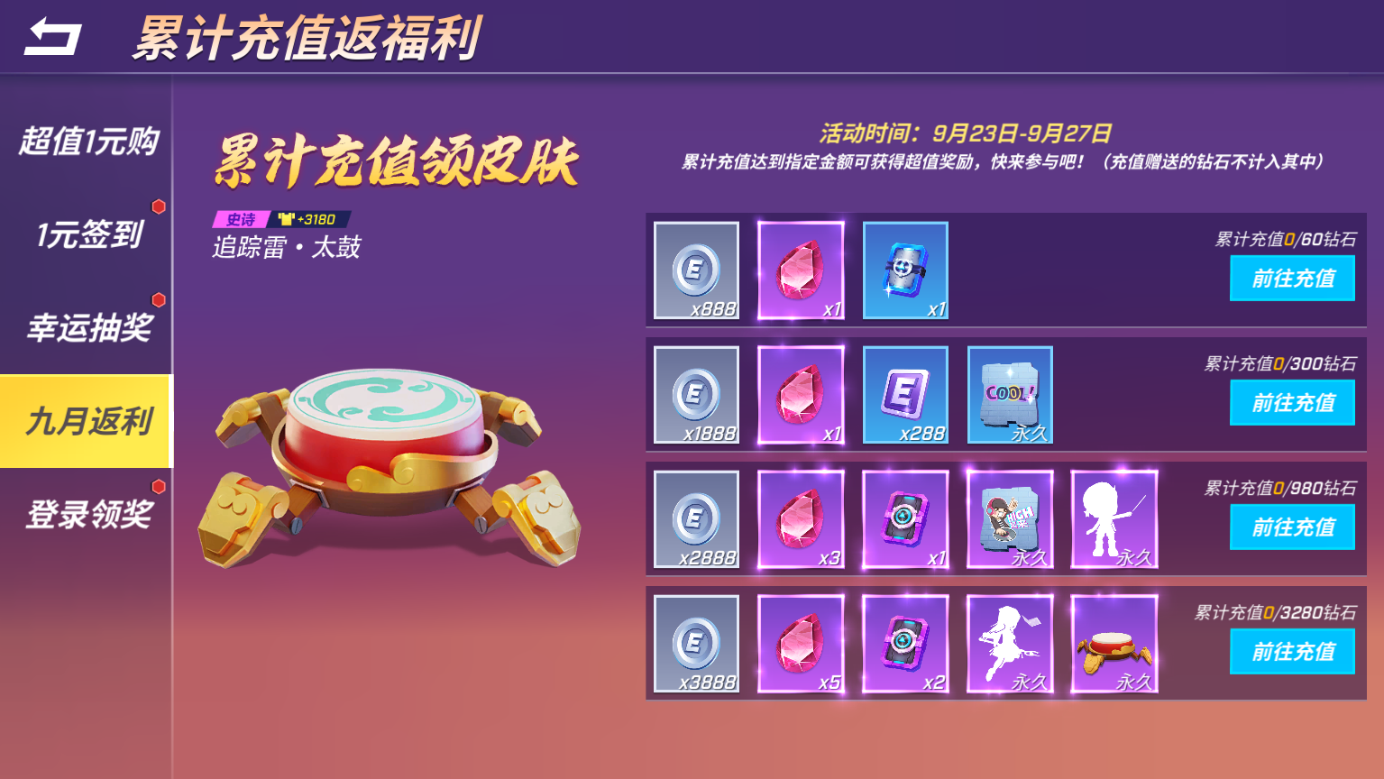 九月份累充福利来啦~超值奖励等你来拿!