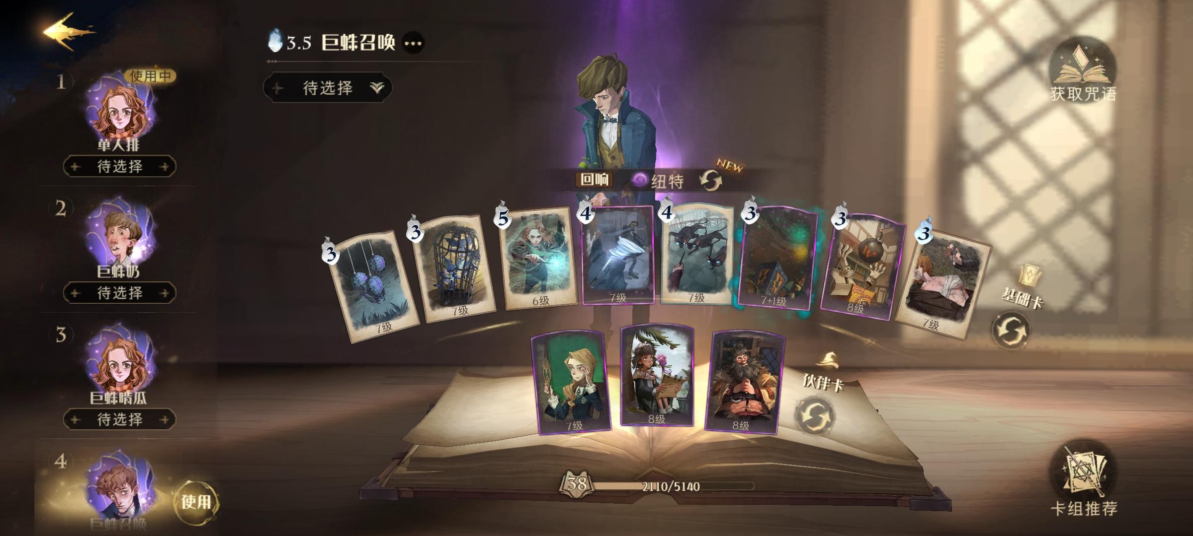 如图,推荐纽特低费召唤流搭配炸弹,前期清蛛巢时可带一个统统加护三人站在一起聚集输出,烟花盒子也记得带,输出和召唤都可以带烟花盒子,后期惊醒蜘蛛boss时记得三人分开站三角,用召唤物优先拉仇恨争取咒术流的输出,但是一定要带一张费用适当但是高输出的咒术卡,比如赫敏的火焰术或者飓风咒,因为游走输出的队友很可能被boss直接拉进去结茧,记得及时救输出(),个人更喜欢飓风咒救人,赫敏的火焰咒打不掉一整个蛛茧的血量