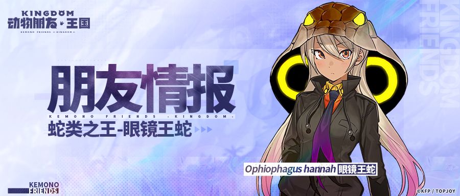 王国中的眼镜王蛇非常喜欢被人依靠,在生活中也很关心同伴。不过,因为她有毒的传闻,让其他的朋友感到害怕,所以她时常思考该如何运用自己的毒液来造福大家。