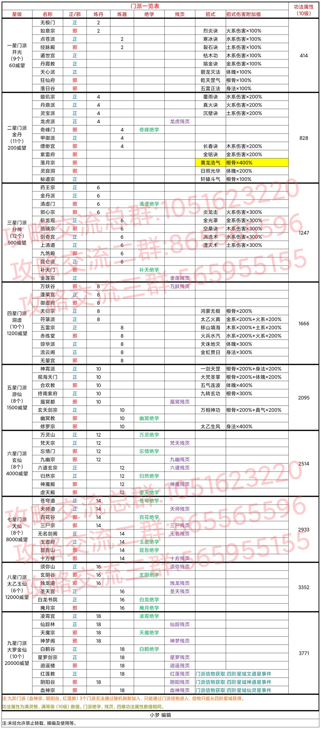 门派一览表(2021.9.14)