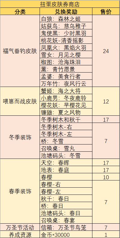 建议家主根据自己的喜好使用「扭蛋皮肤券」来兑换活动皮肤和活动装饰,不推荐使用「扭蛋皮肤券」兑换金币,下期扭蛋机活动会新增仅限「扭蛋皮肤券」兑换的神秘奖品。
