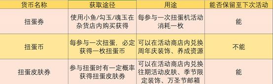 活动商店介绍:本次活动分为两个活动商店,家主可以在扭蛋币商店内兑换周年庆装饰和养成资源。家主也可以在扭蛋皮肤券商店内兑换往期活动装饰和式神皮肤。