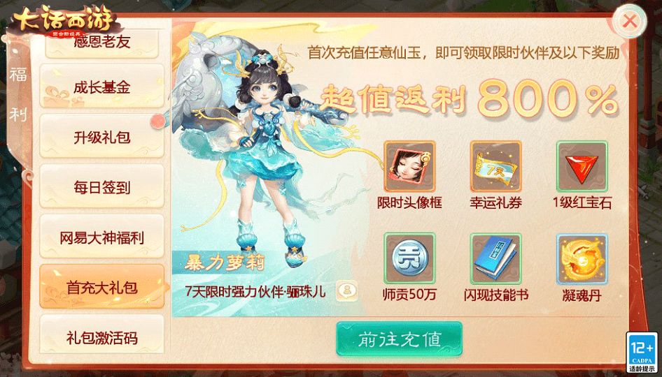 另外,在【六六大顺】新服开启之后,每日签到、升级礼包、步步为赢、萌新礼包、超值基金、开服鑫卡、冲榜大奖等新服专属活动也将同步开启。签到必得百变萌宠狐小妖、金蟾仙器,首次充值任意金额的仙玉,还能将限时强力伙伴骊珠儿领回家!