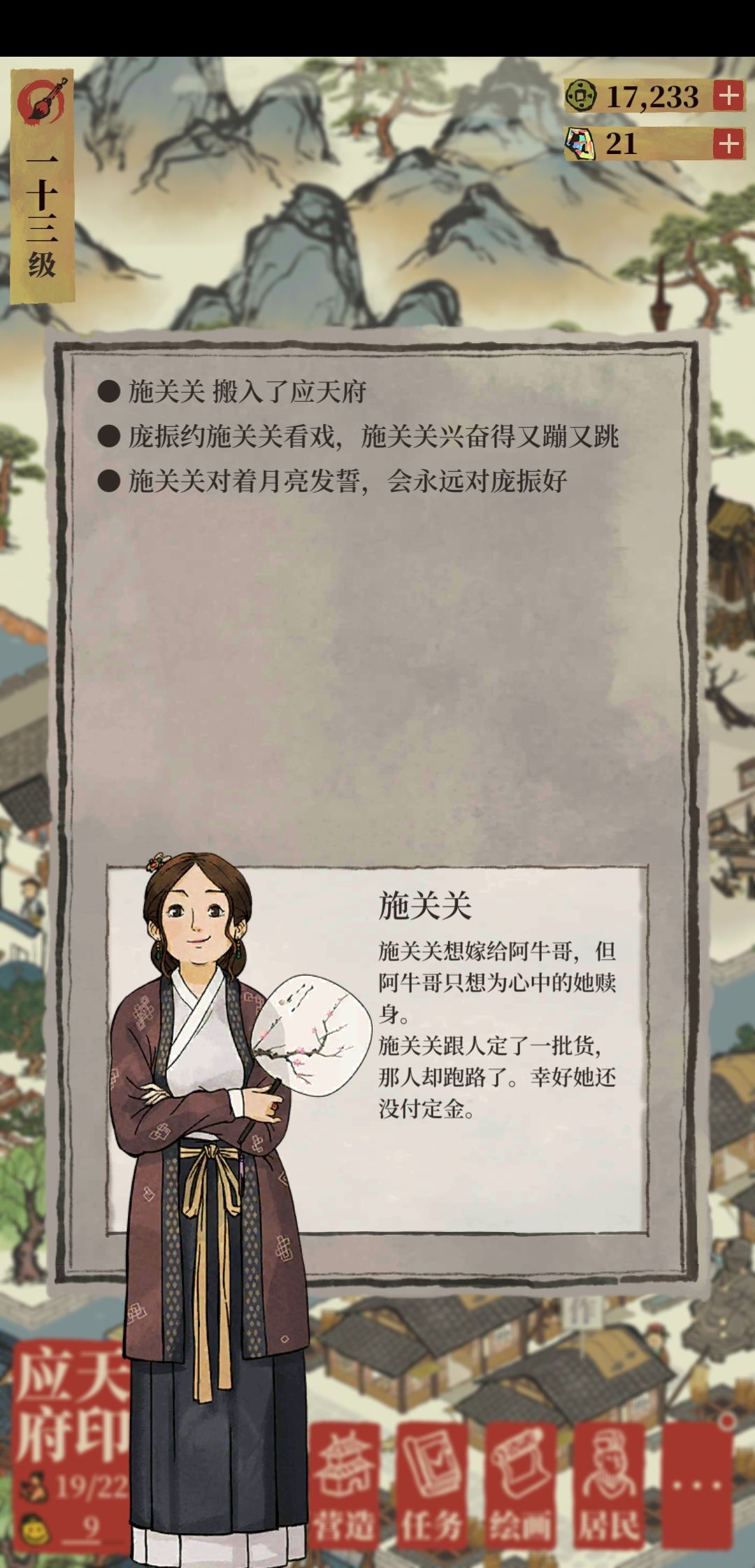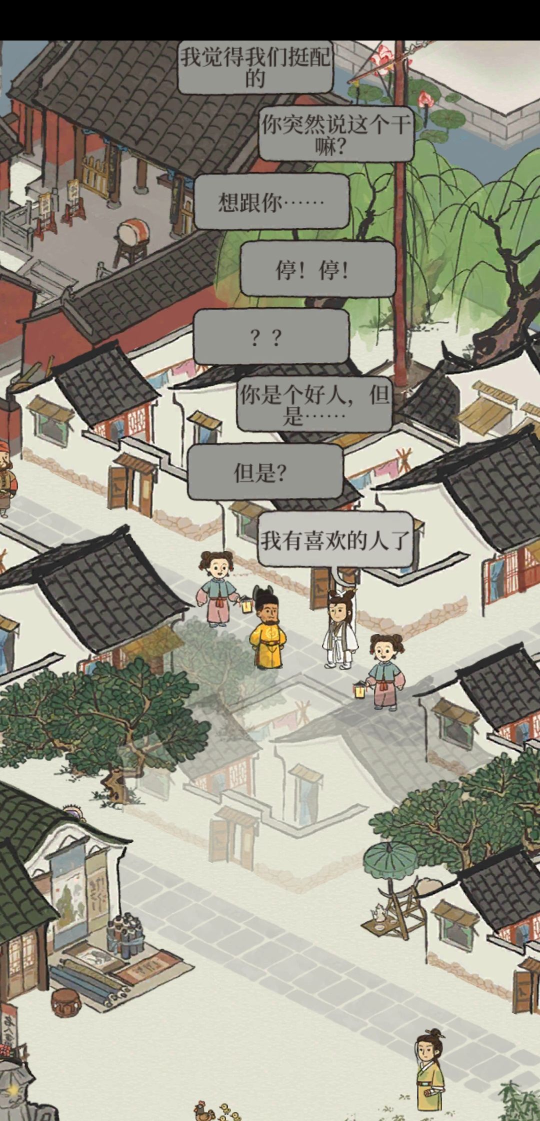 这些居民讲话太有意思了hhhh,小彩蛋笑死我了,我超级喜欢这种小小人,看他们瞎溜达都能看半天(´ฅω•ฅ`)チラッ,就是如果小人可以有更多的互动,比方说白天小朋友背着书包进学堂,晚上再由家长接回来,就更像古代的感觉了(话说可不可以加白天黑夜系统呀,晚上再有更夫打更也蛮有意思的,还有四季系统,老看着春天怪没有意思的,最好四季有不同的活动就好了,比方说中秋节,小人聚在一起分月饼看月亮,过年的时候有鞭炮声,时间线也不一定需要和现实生活重合,具体怎么来就看你们制作组啦(◉㉨◉) )。