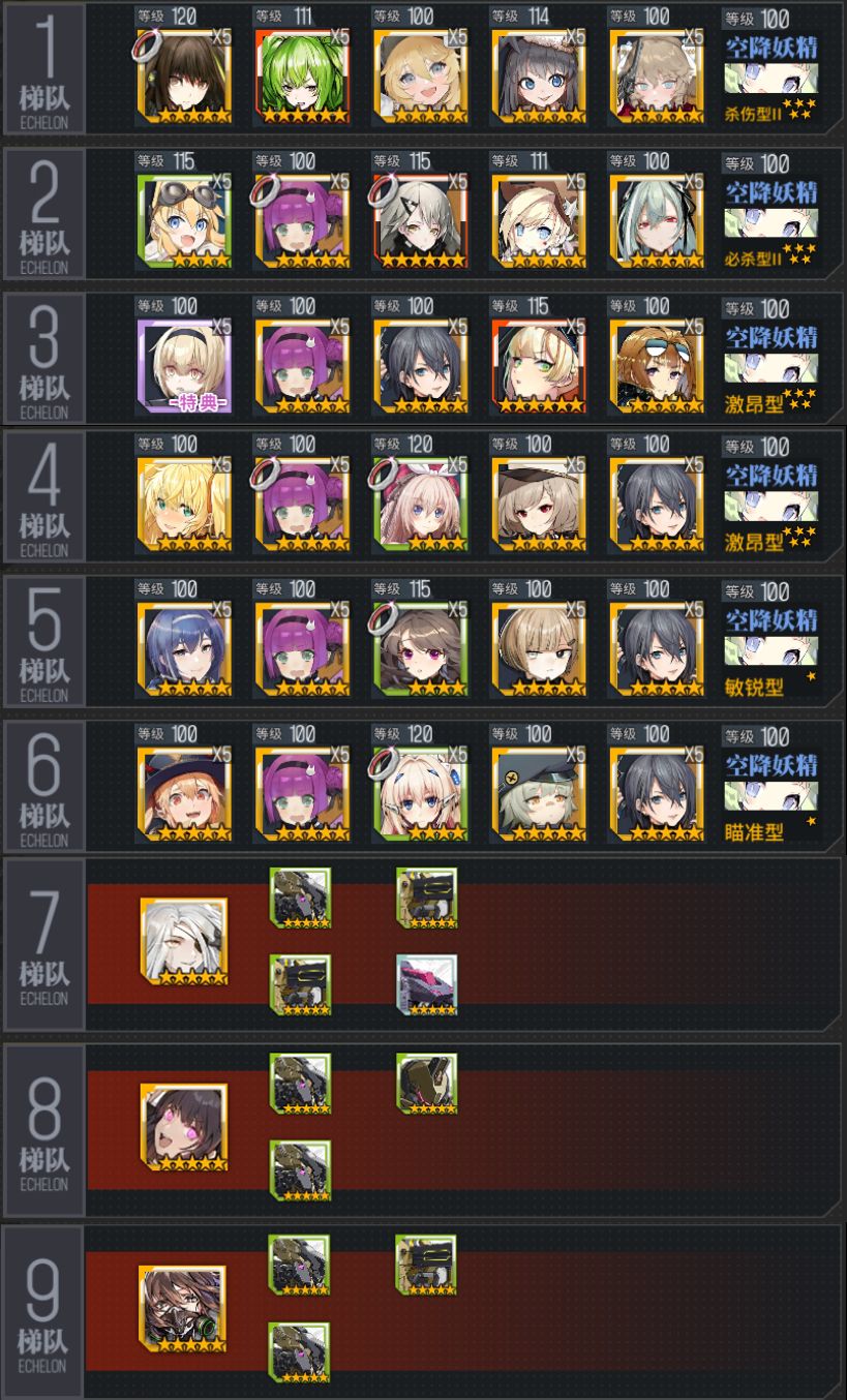 - 参与作战的格里芬梯队的完整梯队列表,包括其使用的人形,妖精及其星级