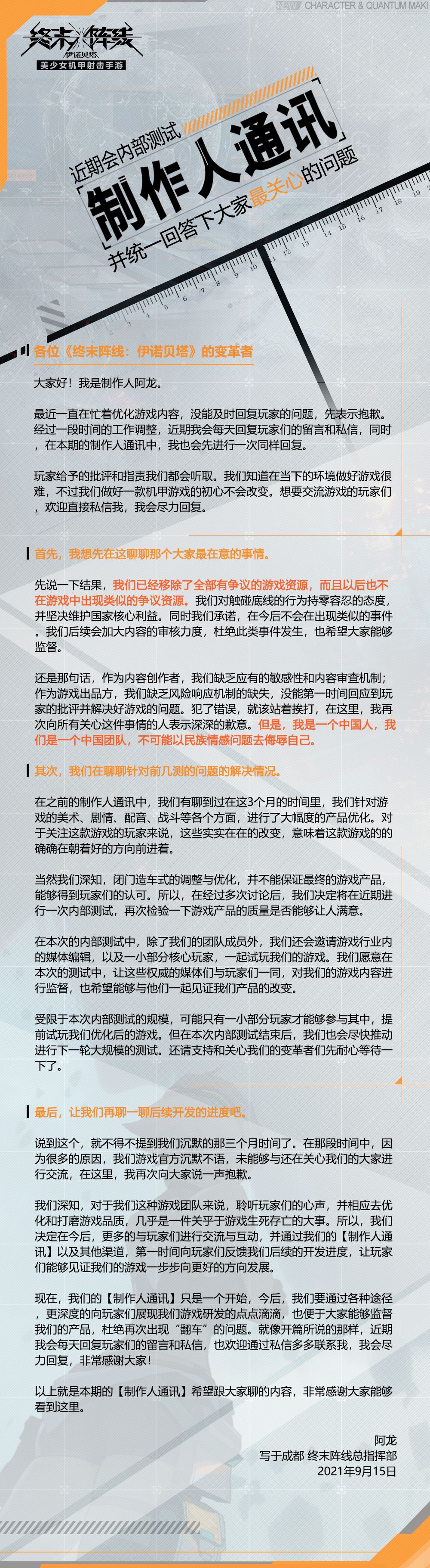 【制作人通讯】近期会内部测试,并统一回答下大家最关心的问题