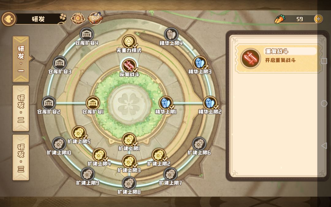 如题,如题后宅那边研发重复战斗我已经开启了,但是无论我怎么找右上角这个位置就是没有重复战斗,求助