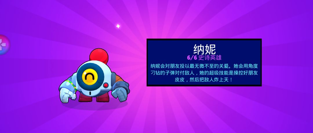 总之,纳尼的特色就是高伤害,但是操作难度大,同时血量低。在官方给予的定义中,纳尼是一个战士。在各项指标上官方也认为纳尼是一个叫高强力进攻性的英雄,相反把他的防御指标压得很低。